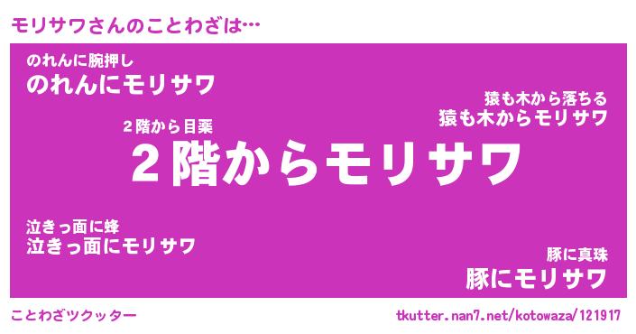 | 胡散臭い通販商品みたいなあだ名 | 『必ず成功する霊験あらたかなお札…その名も「モリサワ」』 |
