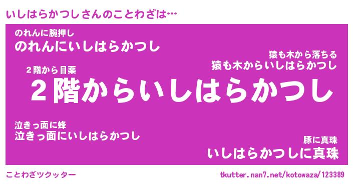 | 胡散臭い通販商品みたいなあだ名 | 『必ず成功する霊験あらたかなお札…その名も「いしはらかつし」』 |