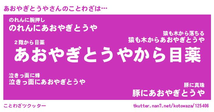 | 恥ずかしいあだ名 | 『プリティーあおやぎとうや』『あおちん』 |