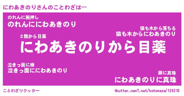 | ヘコむあだ名 | 『にわふぇ~』『なまこ酢』『にわを』 |