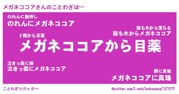 | 胡散臭い通販商品みたいなあだ名 | 『億万長者になれる霊験あらたかなお札…その名も「メガネココア」』 |