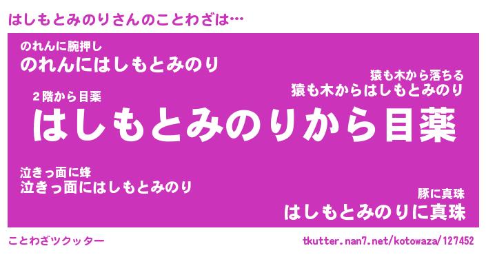 | 胡散臭い通販商品みたいなあだ名 | 『億万長者になれるブレスレット…その名も「はしもとみのり」』 |