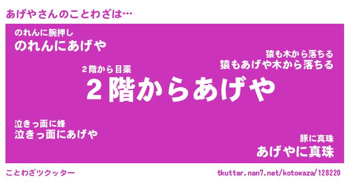 | 意味不明あだ名 | 『ペロリンあげや』『あげやフォーエバー』 |