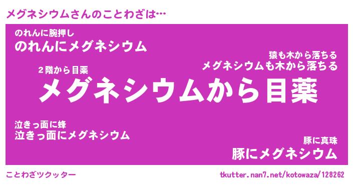 | 胡散臭い通販商品みたいなあだ名 | 『億万長者になれる霊験あらたかなお札…その名も「メグネシウム」』 |