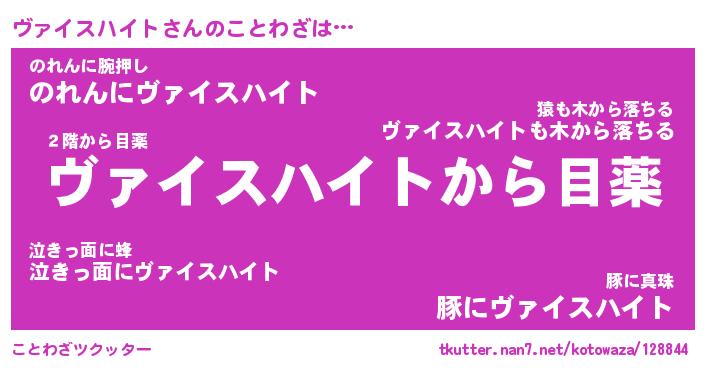 | 女子向けラノベタイトル風あだ名 | 『ヴァイスハイト姫と円卓の騎士』 |