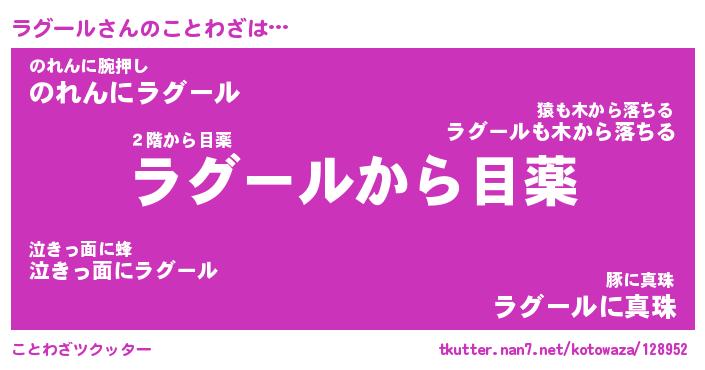 | ヘコむあだ名 | 『ラグにゅー』『つくし』『ラグお』 |