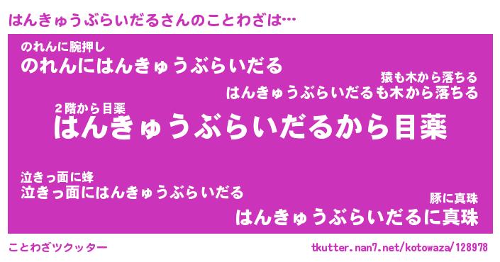 | ツイッター | はんきゅうぶらいだるさんのツイッターID『katatsumuri_man』 |