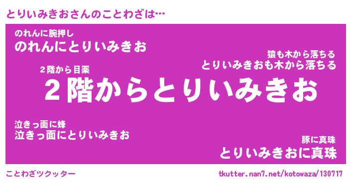 | 肩書あだ名 | 『とりいみきお店長』『とりいみきお担任』 |