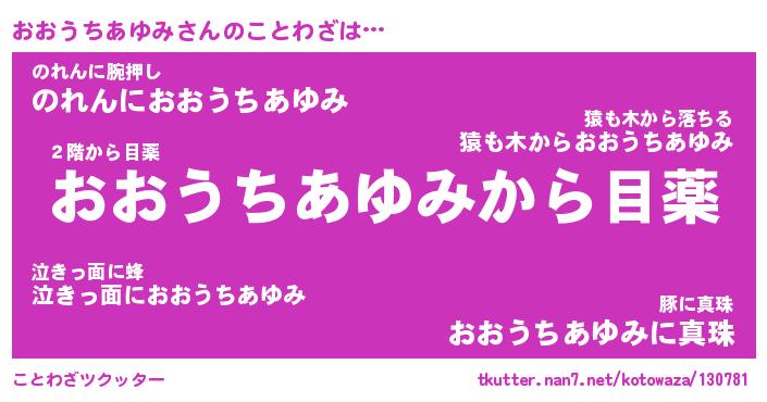 | 恥ずかしいあだ名 | 『プリティーおおうちあゆみ』『おおちん』 |