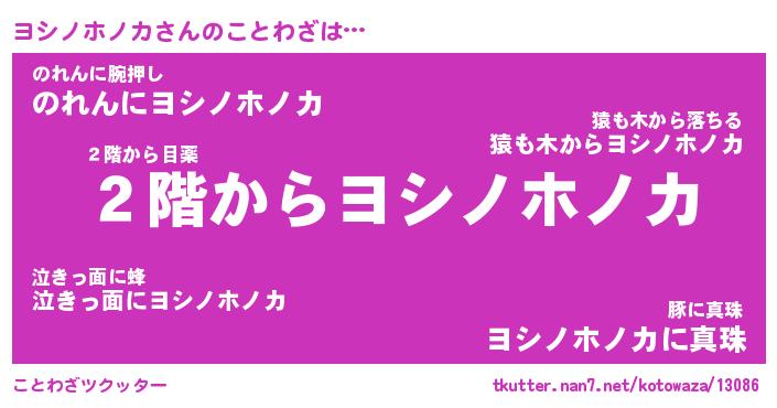 | 胡散臭い通販商品みたいなあだ名 | 『必ず成功する水晶球…その名も「ヨシノホノカ」』 |