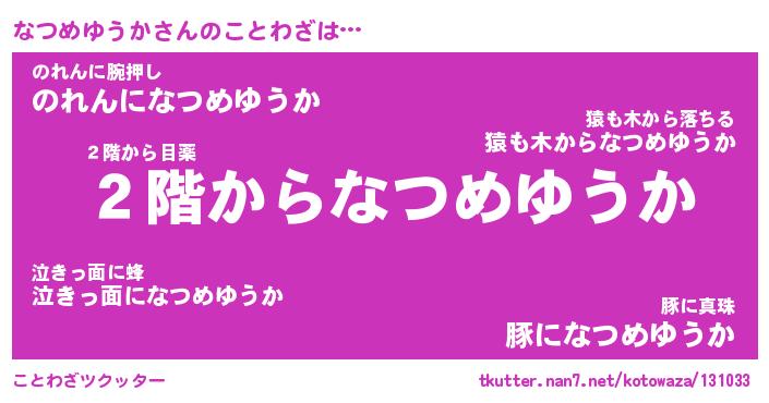 | 胡散臭い通販商品みたいなあだ名 | 『必ず成功するブレスレット…その名も「なつめゆうか」』 |