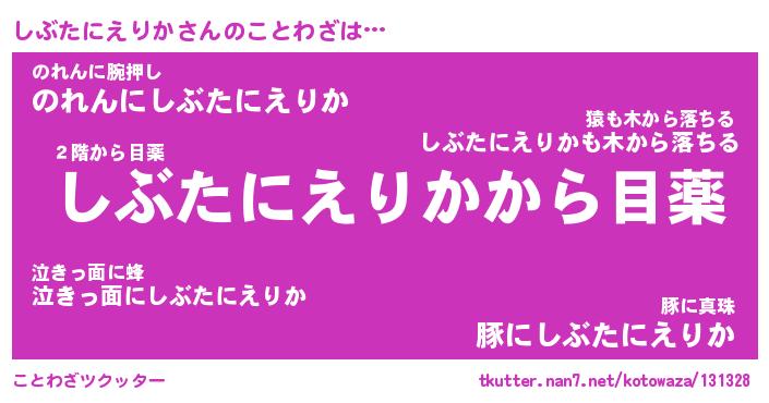 | ツイッター | しぶたにえりかさんのツイッターID『namakemono_nyan』 |