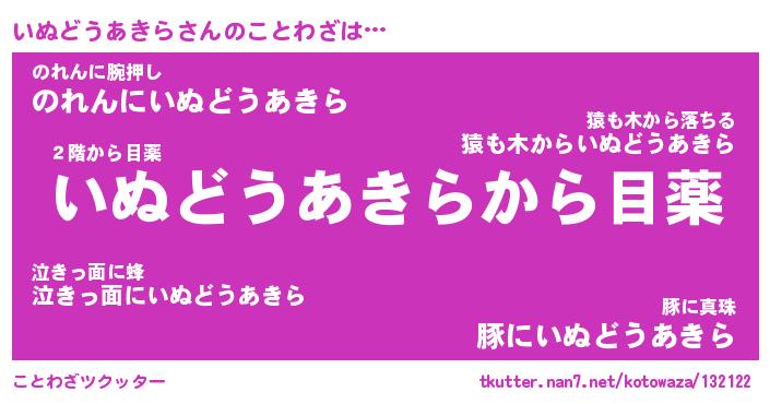 | 胡散臭い通販商品みたいなあだ名 | 『億万長者になれる霊験あらたかなお札…その名も「いぬどうあきら」』 |