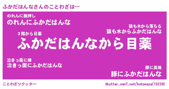 | ヘコむあだ名 | 『ふかもー』『酢こんぶ』『ふか太郎』 |