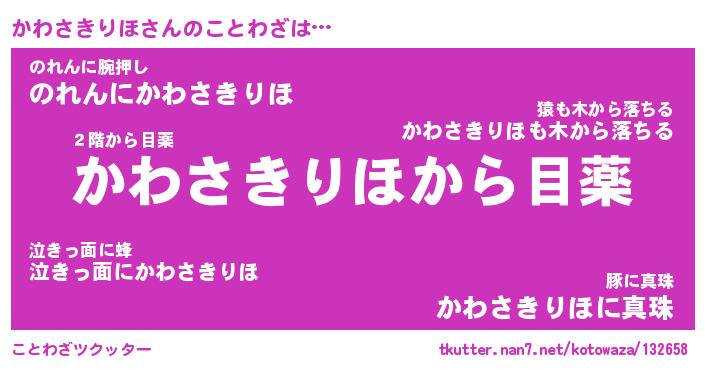 | ヒーロー風カッコイイあだ名 | 『スーパーカワサキリホ』『幻影騎士カワ』 |