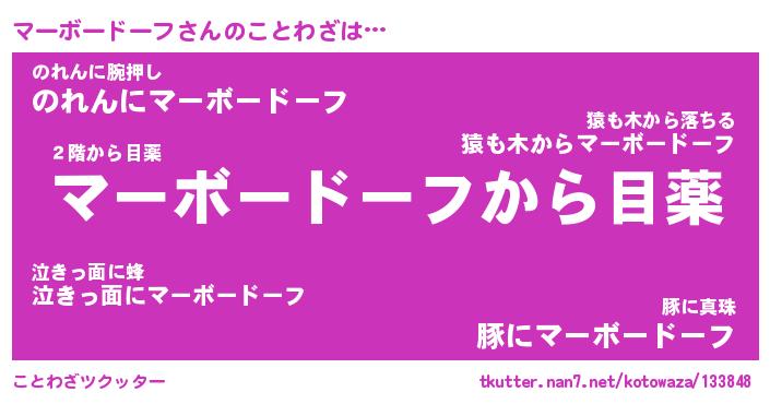 | 胡散臭い通販商品みたいなあだ名 | 『億万長者になれる霊験あらたかなお札…その名も「マーボードーフ」』 |