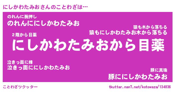 | 肩書あだ名 | 『にしかわたみお御曹司』 |