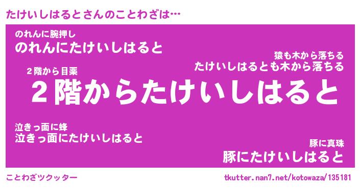 | 胡散臭い通販商品みたいなあだ名 | 『必ず成功する霊験あらたかなお札…その名も「たけいしはると」』 |