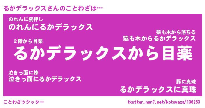 | 胡散臭い通販商品みたいなあだ名 | 『億万長者になれる霊験あらたかなお札…その名も「るかデラックス」』 |