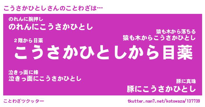 | 女子向けラノベタイトル風あだ名 | 『誰かこのこうさかひとしを説明してください! ~契約から始まるウェディング~』 |