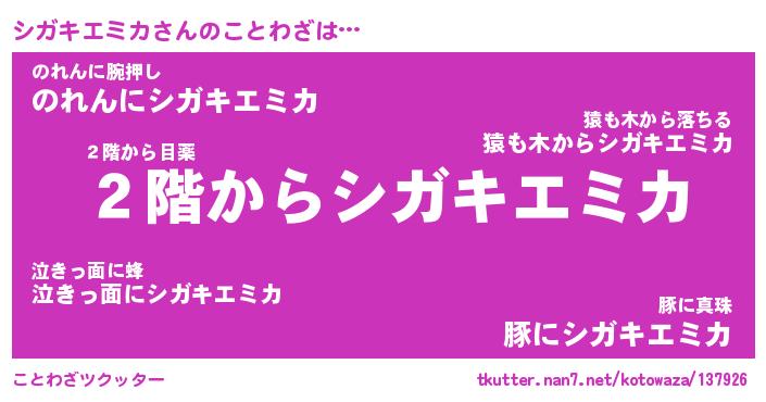 | 肩書あだ名 | 『シガキエミカCEO』『シガキエミカ大統領』 |