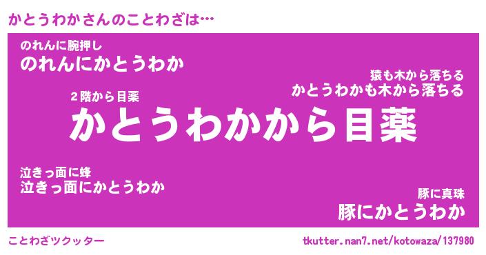 | ヘコむあだ名 | 『かとにー』『豆乳』『かとを』 |