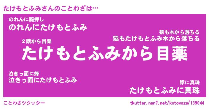 | ヘコむあだ名 | 『たけにー』『豆乳』『たけっぺ』 |