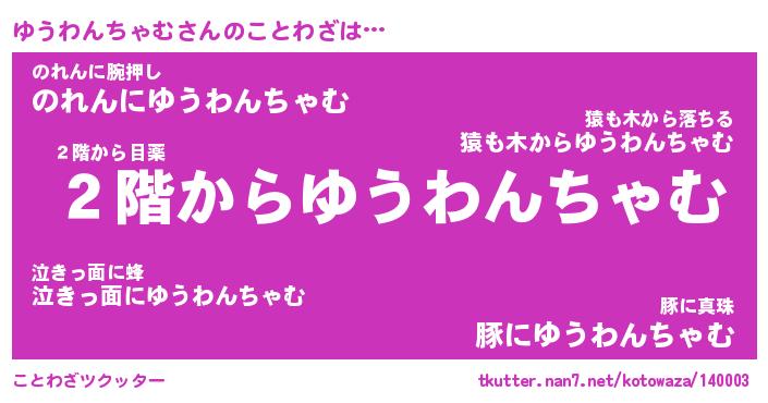 | 男性向けラノベタイトル風あだ名 | 『ゆうわんちゃむの憂鬱』 |