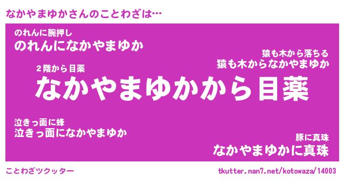 | 胡散臭い通販商品みたいなあだ名 | 『億万長者になれるブレスレット…その名も「なかやまゆか」』 |