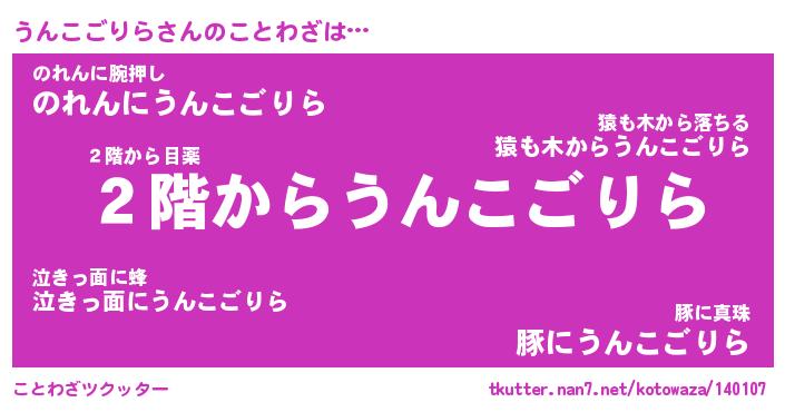 | 男性向けラノベタイトル風あだ名 | 『うんこごりらの憂鬱』 |
