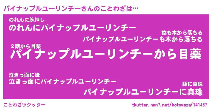 | 胡散臭い通販商品みたいなあだ名 | 『億万長者になれるブレスレット…その名も「パイナップルユーリンチー」』 |