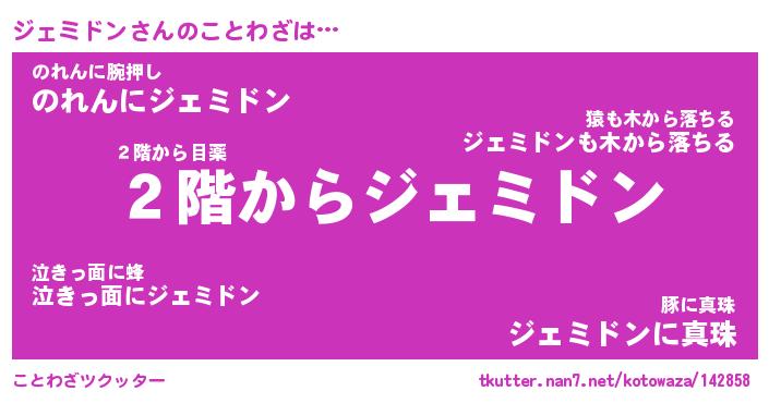 | 男性向けラノベタイトル風あだ名 | 『ジェミドンの憂鬱』 |