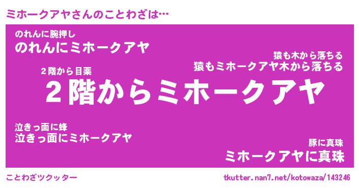 | 胡散臭い通販商品みたいなあだ名 | 『モテモテ間違いなし水晶球…その名も「ミホークアヤ」』 |