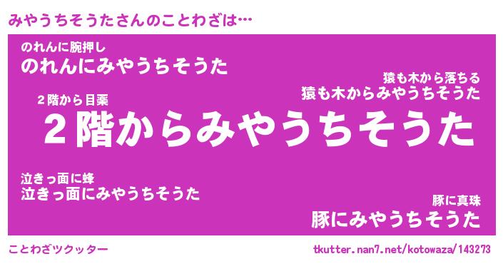 | 男性向けラノベタイトル風あだ名 | 『みやうちそうたの憂鬱』 |