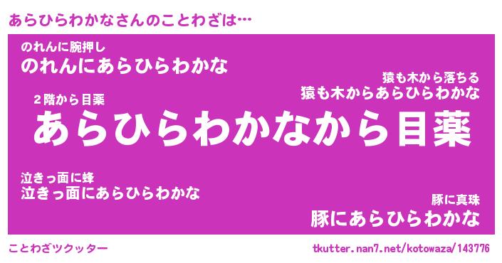 | 恥ずかしいあだ名 | 『プリティーあらひらわかな』『あらちん』 |