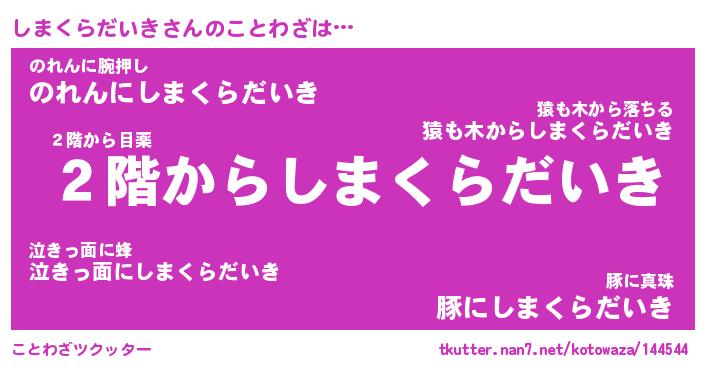 | 胡散臭い通販商品みたいなあだ名 | 『必ず成功するブレスレット…その名も「しまくらだいき」』 |
