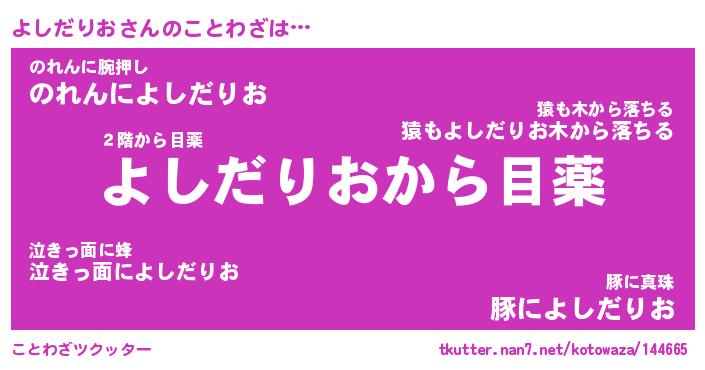 | 胡散臭い通販商品みたいなあだ名 | 『億万長者になれるブレスレット…その名も「よしだりお」』 |