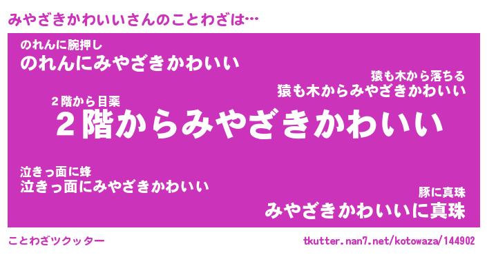 | 胡散臭い通販商品みたいなあだ名 | 『モテモテ間違いなし霊験あらたかなお札…その名も「みやざきかわいい」』 |