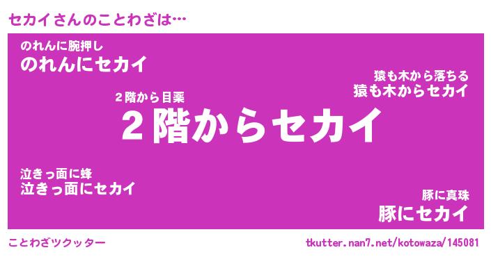 | 胡散臭い通販商品みたいなあだ名 | 『必ず成功する霊験あらたかなお札…その名も「セカイ」』 |
