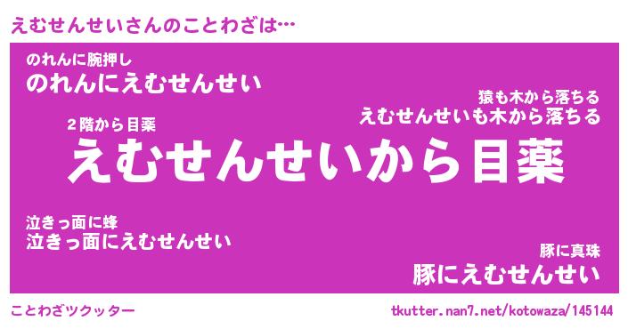 | ヘコむあだ名 | 『えむにゅー』『酢こんぶ』『えむを』 |
