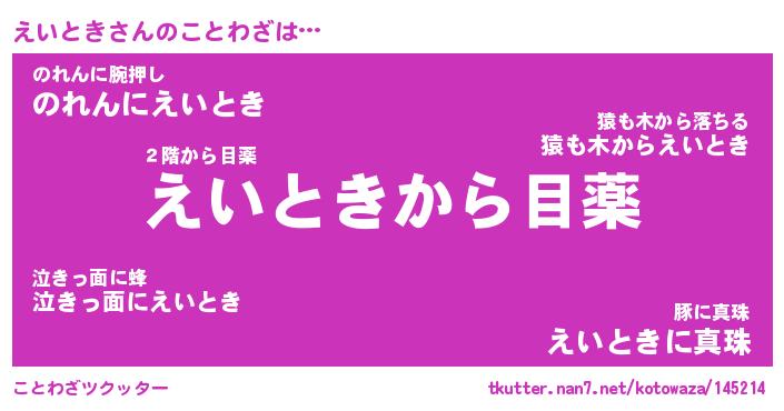 | 恥ずかしいあだ名 | 『プリティーえいとき』『えいっちょ』 |