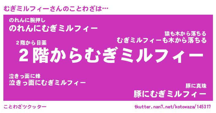 | 胡散臭い通販商品みたいなあだ名 | 『必ず成功する霊験あらたかなお札…その名も「むぎミルフィー」』 |