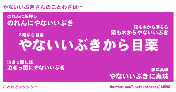 | 胡散臭い通販商品みたいなあだ名 | 『億万長者になれる霊験あらたかなお札…その名も「やないいぶき」』 |