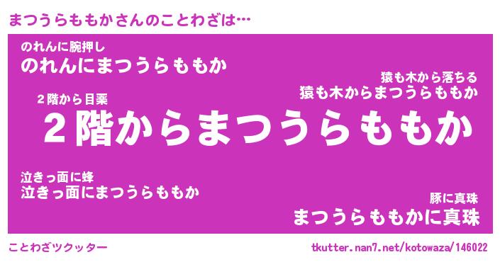 | 恥ずかしいあだ名 | 『プリティーまつうらももか』『まつちん』 |
