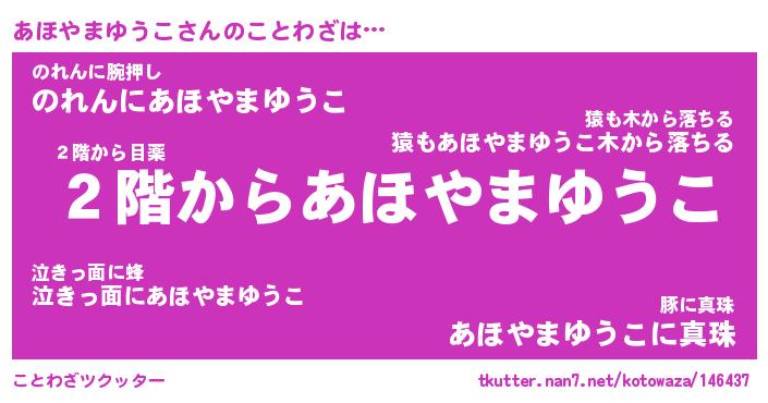 | ツイッター | あほやまゆうこさんのツイッターID『konnyaku_idle』 |