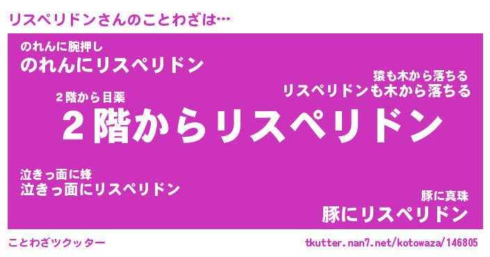 | 胡散臭い通販商品みたいなあだ名 | 『モテモテ間違いなしブレスレット…その名も「リスペリドン」』 |