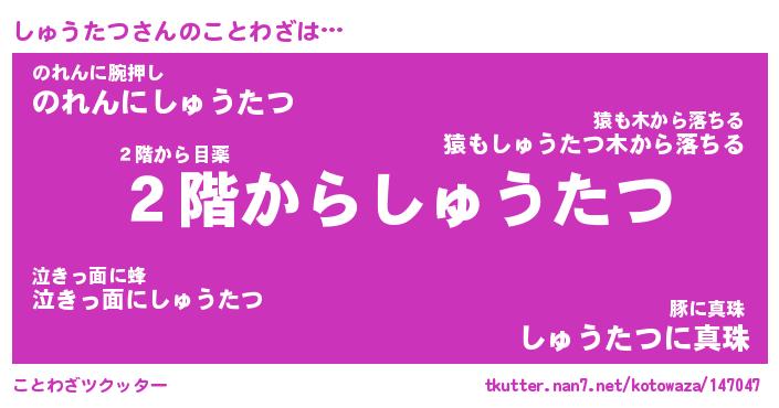 | ヘコむあだ名 | 『しゅにー』『なまこ酢』『しゅお』 |