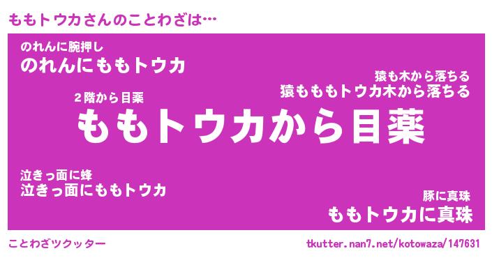 | 胡散臭い通販商品みたいなあだ名 | 『億万長者になれる霊験あらたかなお札…その名も「ももトウカ」』 |