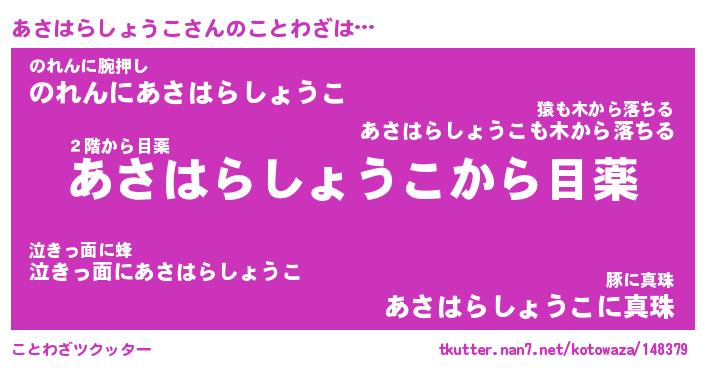 | 胡散臭い通販商品みたいなあだ名 | 『モテモテ間違いなし霊験あらたかなお札…その名も「あさはらしょうこ」』 |