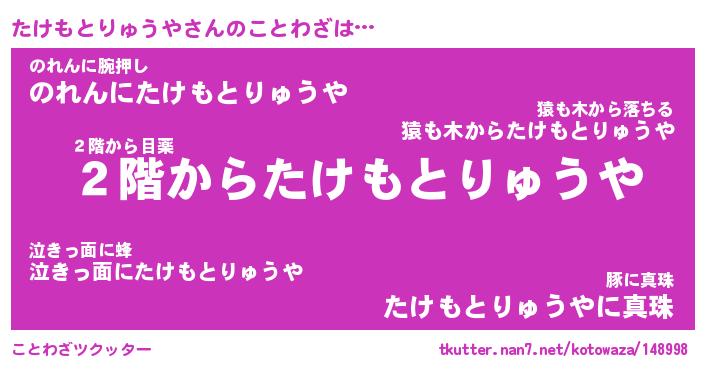 | 男性向けラノベタイトル風あだ名 | 『たけもとりゅうやの憂鬱』 |